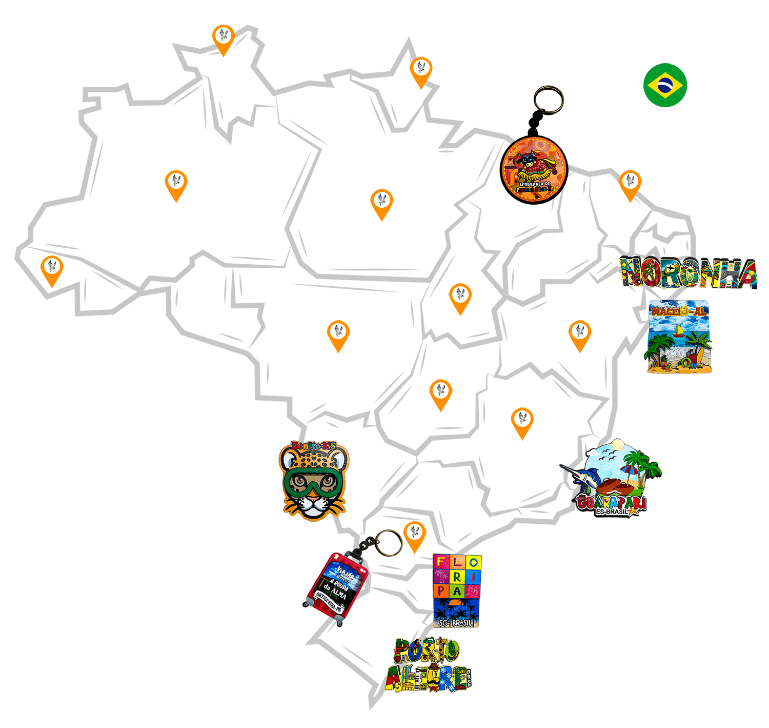 Atendemos exclusivamente lojistas e comerciantes em todo o Brasil, oferecendo uma linha diversificada de souvenirs que encantam turistas e visitantes.