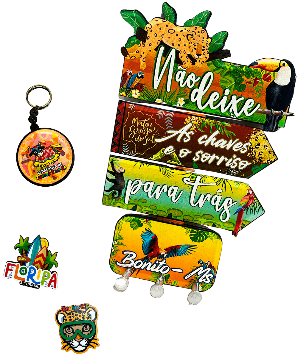 Nossos produtos incluem chaveiros, ímãs, enfeites de mesa, porta chaves, porta copos, porta retratos e muito mais... todos criados com um toque especial que os torna verdadeiramente únicos.